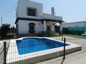 Encontrarás esta casa de 3 dormitorios con piscina, wifi y jardín en una de las zonas más tranquilas de El Palmar, el camino de Guerrero, en una parcela privada y cerrada para desconectar y descansar en un ambiente rural junto al mar.