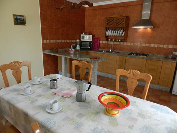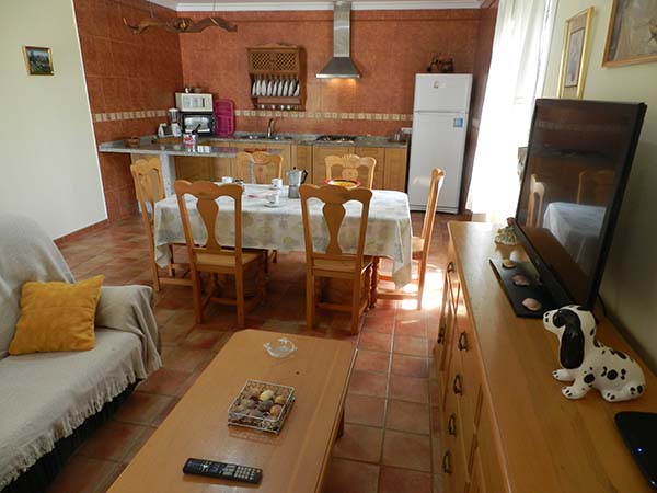 La casa tiene 100 m2 y está distribuida en un amplio salón comedor con chimenea y tv, cocina equipada (fuego a gas, microondas grill, campana, y todos el menaje), 3 dormitorios con capacidad hasta 6 personas y cuarto de baño. En el exterior tiene un gran porche, zona de jardín con barbacoa para disfrutar de las veladas veraniegas y una magnífica piscina. La casa es muy fresca en verano y se alimenta de energías renovables, tanto solar como eólica.