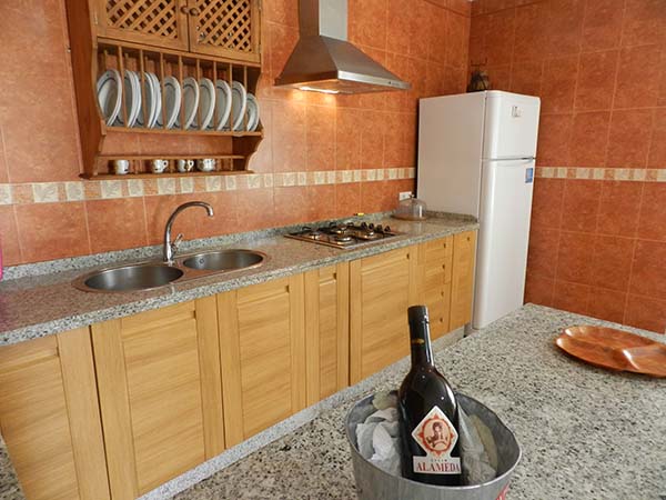 - Cocina equipada con fuego a gas, microondas grill, frigorífico, lavadora y menaje completo